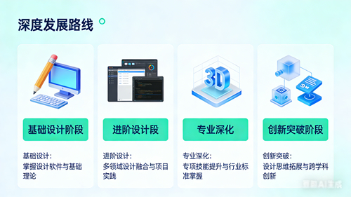 4.長(zhǎng)期發(fā)展:根據(jù)個(gè)人興趣選擇設(shè)計(jì)專家或運(yùn)營(yíng)管理路線,提前規(guī)劃職業(yè)路徑,避免技能單一化,保持對(duì)市場(chǎng)趨勢(shì)的敏感度。